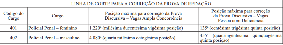 402 | Policial Penal – Masculino | 816 | 91 | 907 |